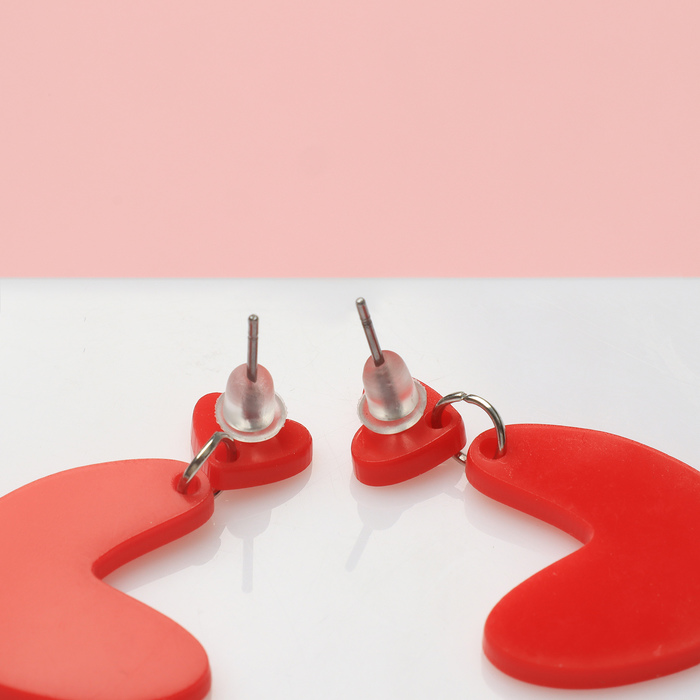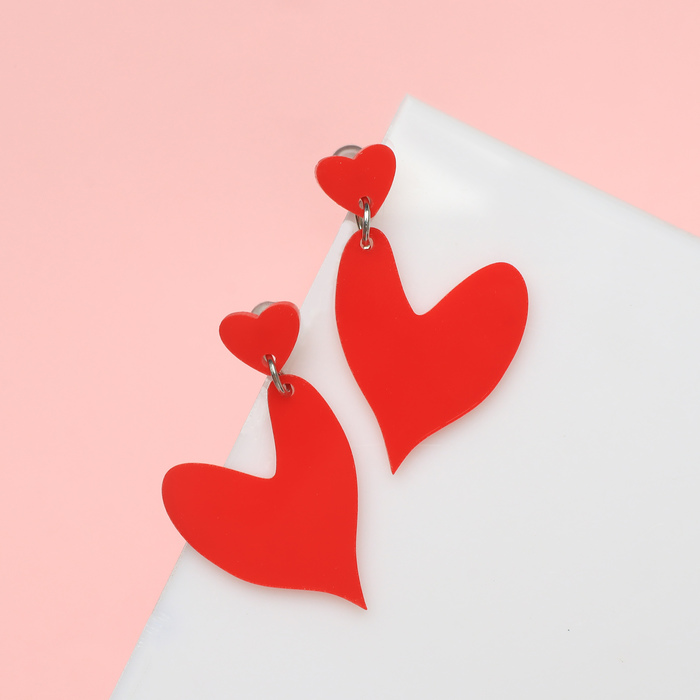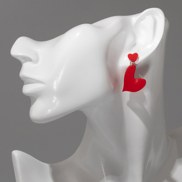 Серьги акриловые «Сердце к сердцу», цвет красный в серебре