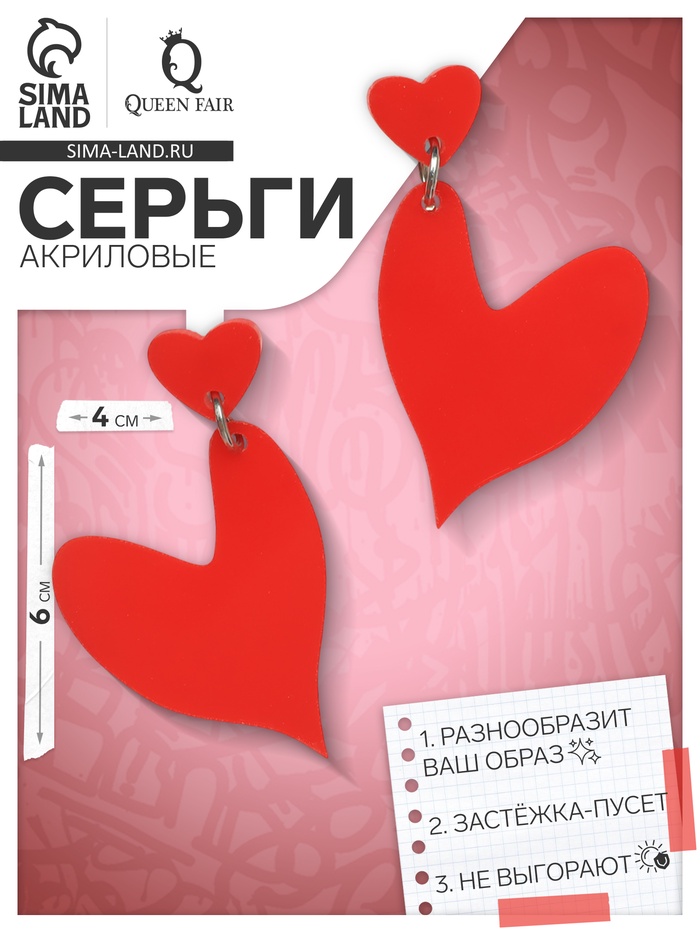 Серьги акриловые «Сердце к сердцу», цвет красный в серебре — Характеристики