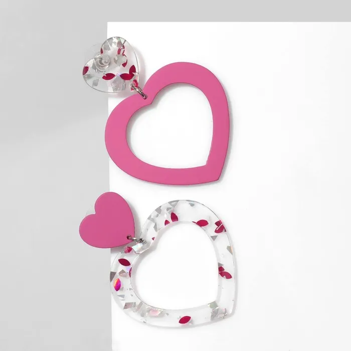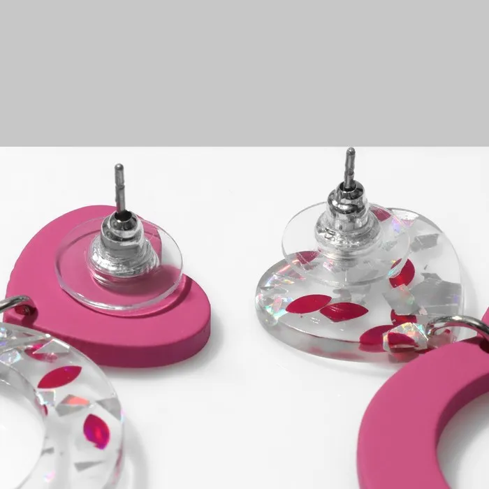 Серьги акриловые «Сердце» с конфетти, цветные в серебре — Характеристики