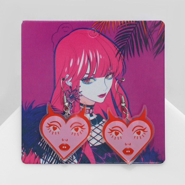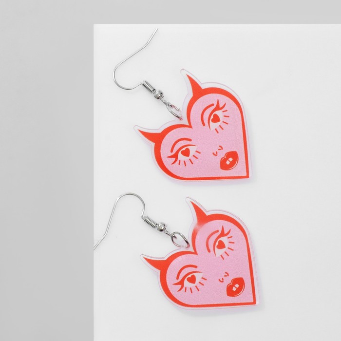 Серьги акриловые «Сердце» с лицом, цвет розово-красный — Характеристики