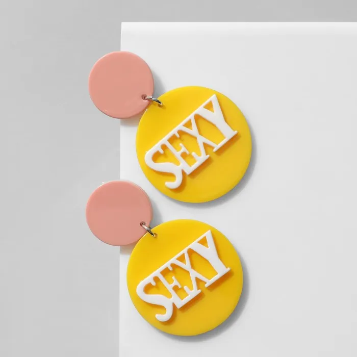 Яркие серьги длиной 5,2 см с акриловыми вставками в жёлто-белых оттенках — смелое и стильное украшение для тех, кто не боится привлекать внимание. Металлическая серебристая основа придаёт изделию современный и элегантный вид, а выразительная надпись «SEXY» добавляет дерзости и индивидуальности.