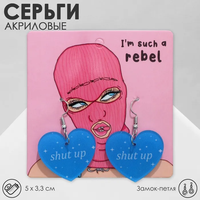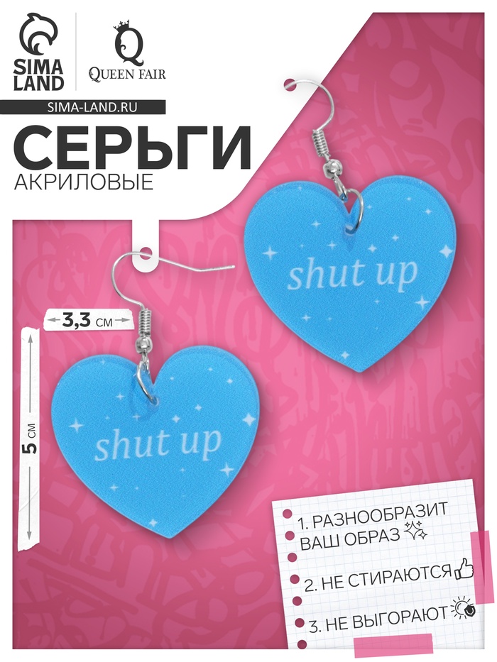 Серьги акриловые Shut up, сердце, цвет бело-голубой — Характеристики