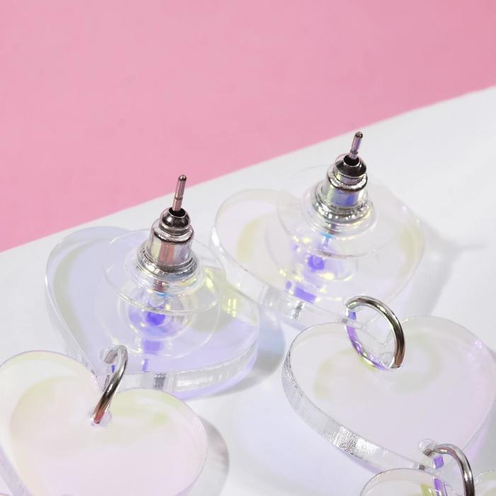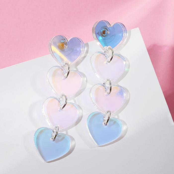 Серьги акриловые «Сияние» ряд сердечек, цвет голубой — Характеристики