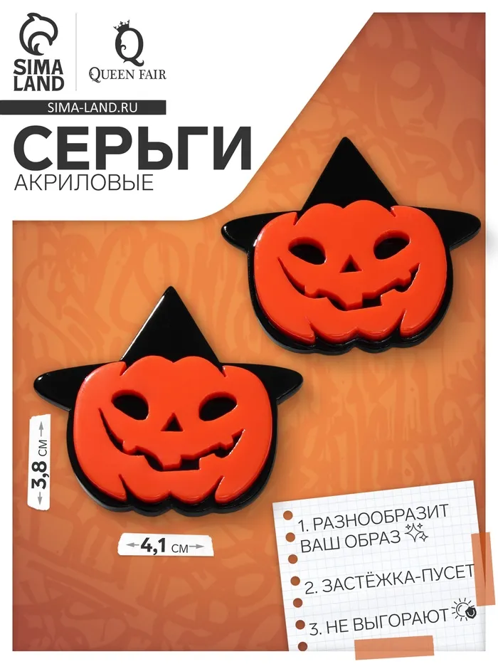 Эти серьги добавляют образу индивидуальность и подчёркивают любовь к тематике осенних праздников. Они легко впишутся в повседневный гардероб и станут ярким дополнением к костюму на Хэллоуин.
