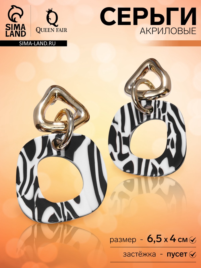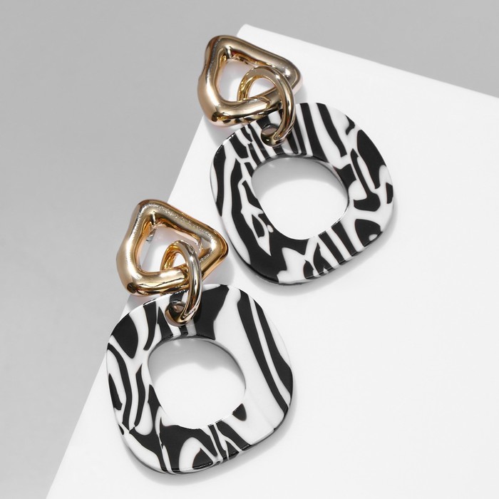 Серьги акриловые «Зебра» цепи, цвет чёрно-белый в золоте — Характеристики