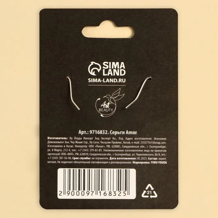 Серьги выполнены из бижутерного сплава и прослужат вам безопасно и долго.