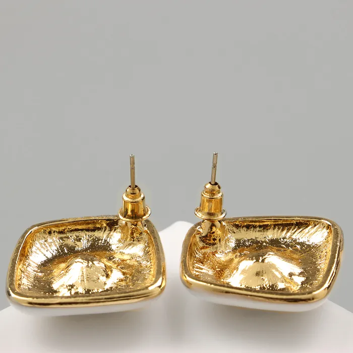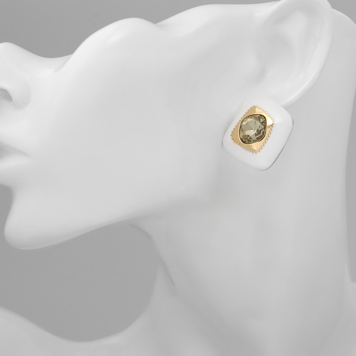 Серьги с абстрактным узором в форме ромба — изысканное сочетание белоснежной эмали и благородного золотого металла, которое придаёт образу лёгкость и современную элегантность. Компактная длина 2,8 см делает украшение заметным, но при этом комфортным для ежедневного ношения.