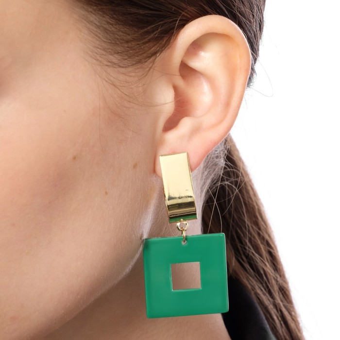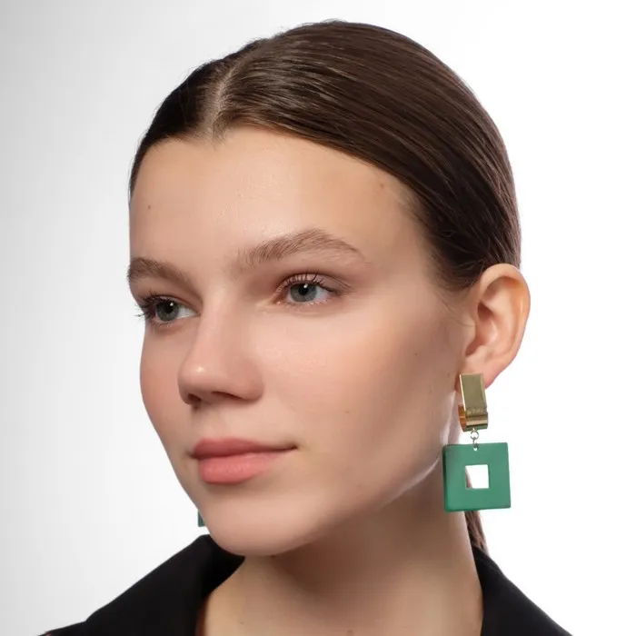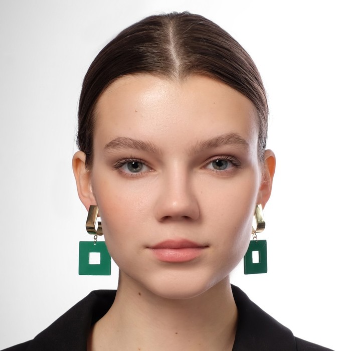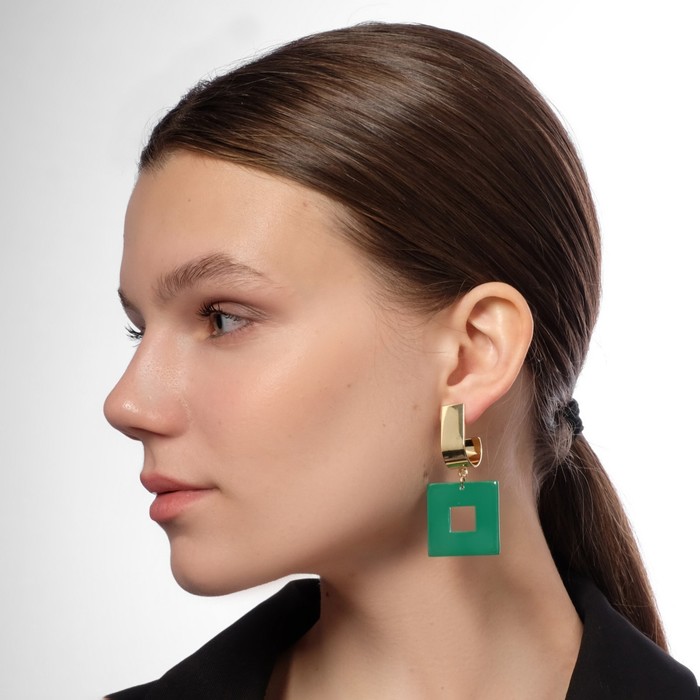 Зелёные квадратные серьги на золотистой основе — лаконичное украшение для женщин, которые ценят выразительные, но сдержанные детали в повседневном и праздничном образе. Длина 5,7 см подчёркивает форму лица и добавляет свежий цветовой акцент.