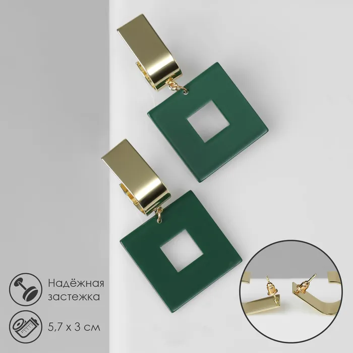 Серьги ассорти «Азелия» квадрат, цвет зелёный в золоте — Характеристики