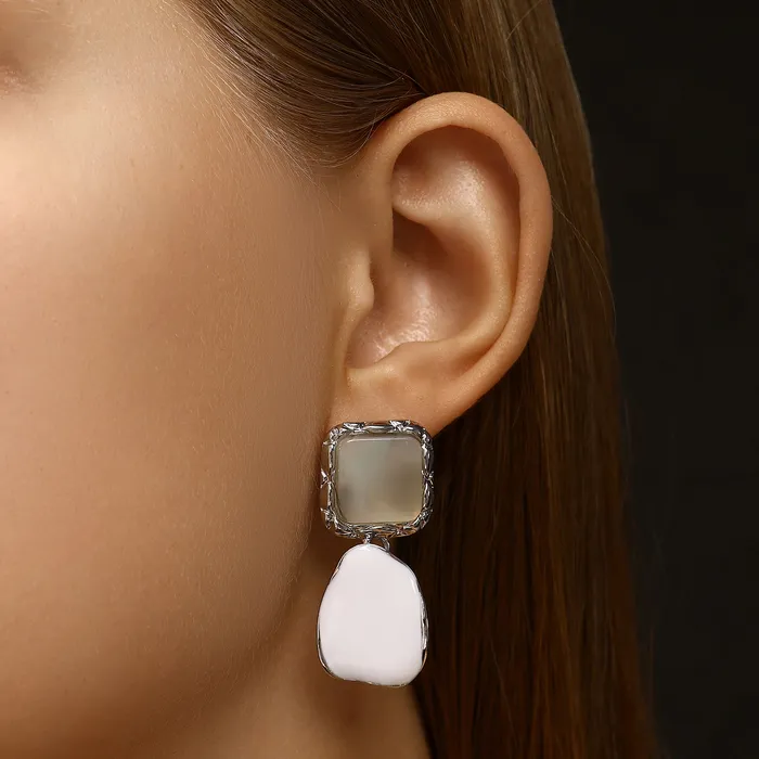 Серебристый оттенок и лаконичная геометрия превращают эти серьги в современный аксессуар, который легко впишется в любой гардероб. Длина 4 см делает украшение заметным, но при этом не перегружает образ, позволяя подчеркнуть индивидуальность и стиль.