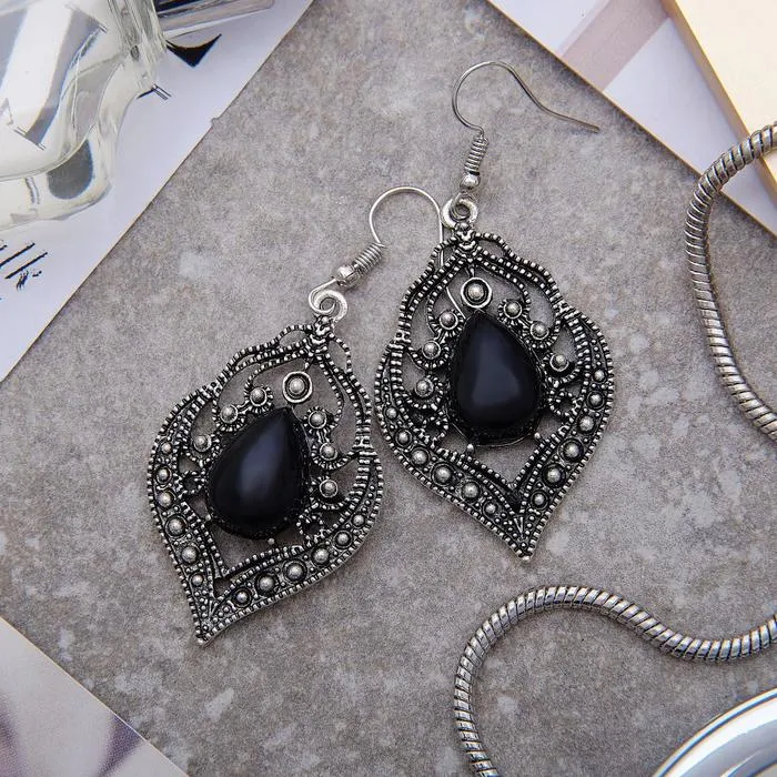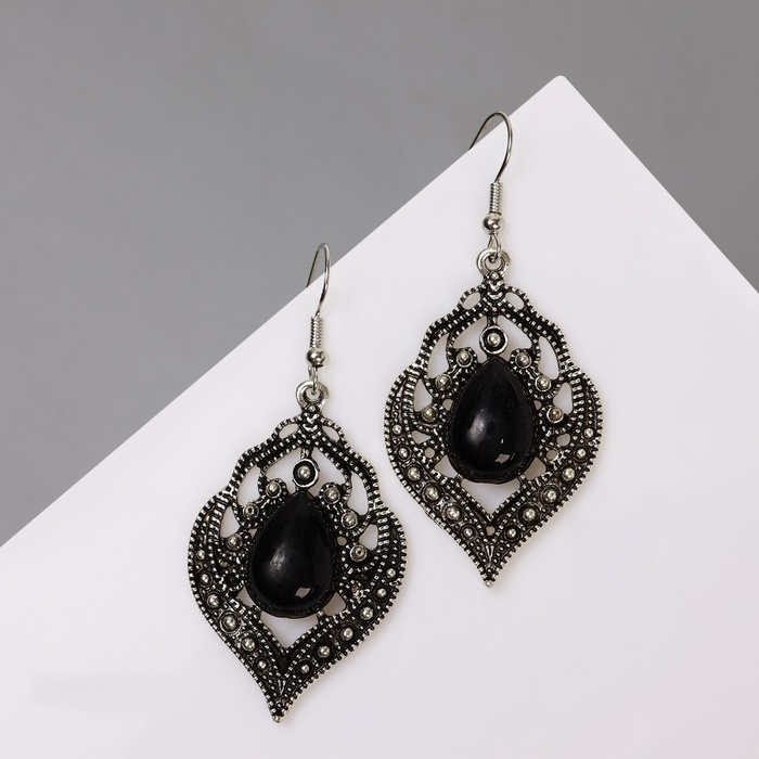 Серьги ассорти «Капля» изящность, ажурная, цвет чёрный в чернёном серебре — Характеристики
