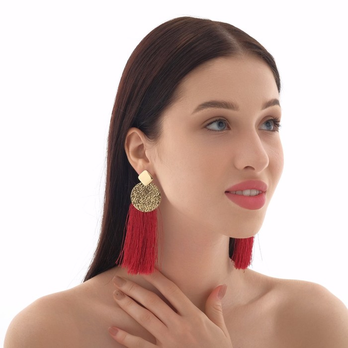 Серьги ассорти «Кисти» хинди, цвет бордовый в золоте, L кисти 6,5 см — Характеристики