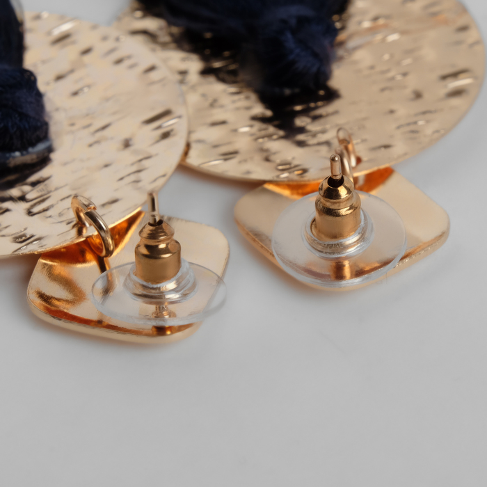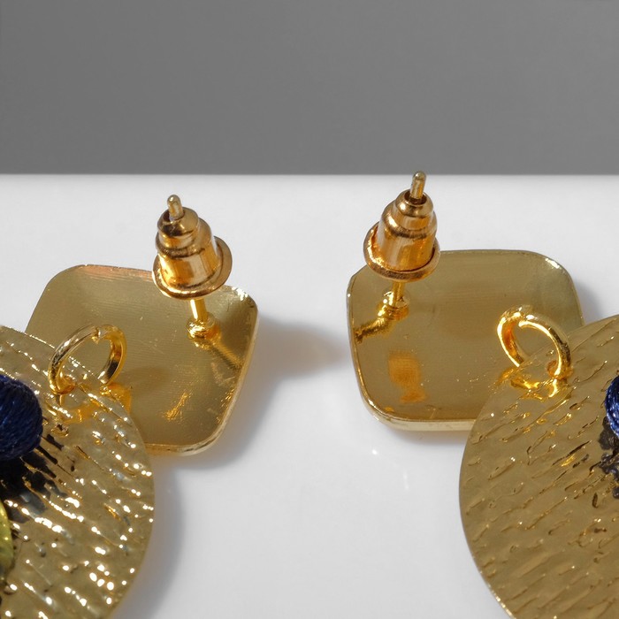Изготовленные из текстильного материала, эти серьги не только легкие, но и невероятно комфортные в носке. Застёжка-пусет (гвоздик) обеспечивает надежную фиксацию, что позволяет вам уверенно носить их в течение всего дня. Тёмно-синий цвет добавляет глубины и загадочности, а золотая фурнитура подчеркивает изысканность и стиль.
