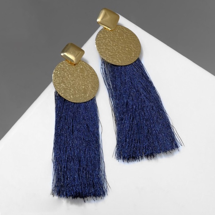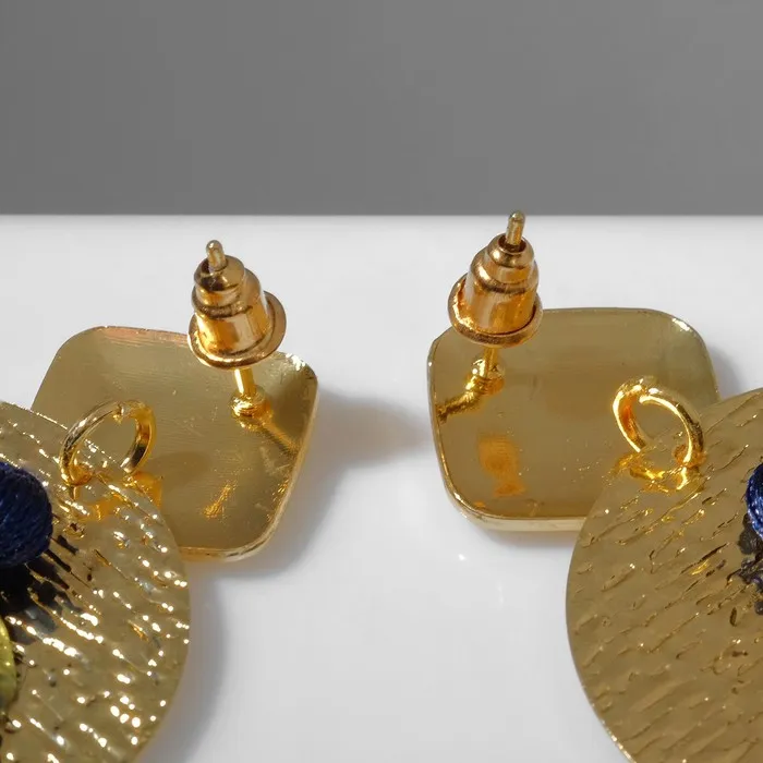 - Эффектный акцент: сочетание тёмно-синего и золотого делает серьги идеальным дополнением к любому наряду.