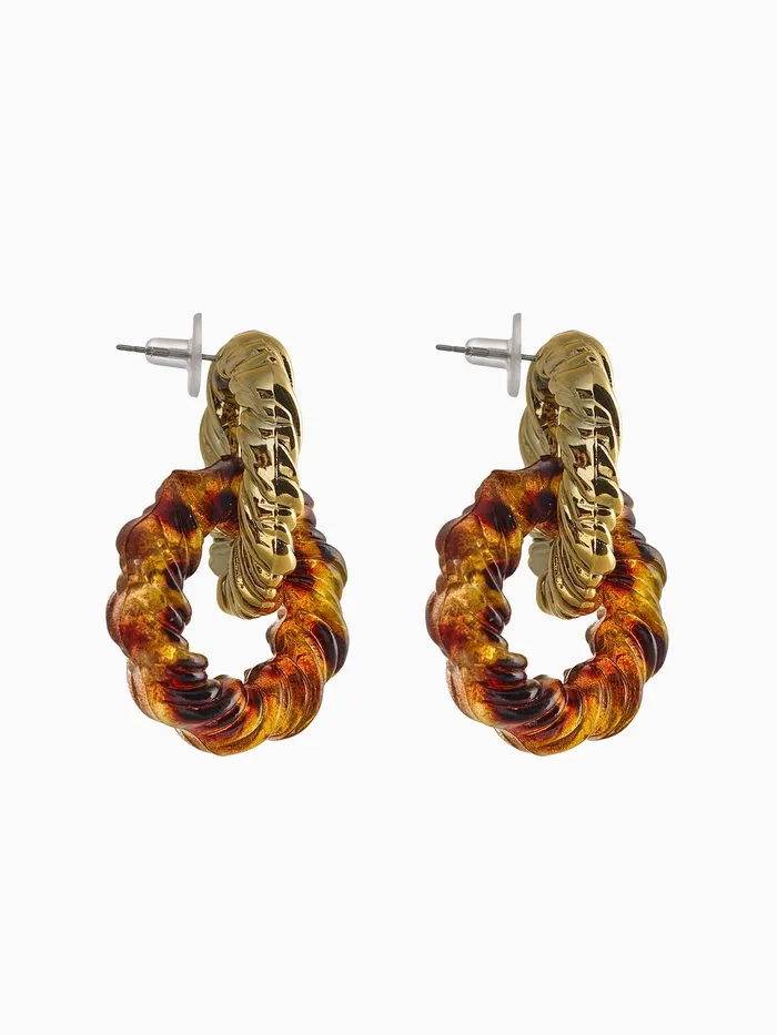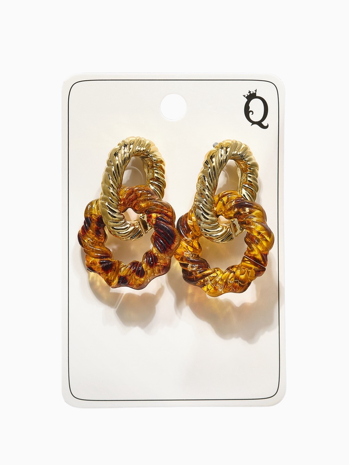 Эффектные серьги с изящным кручёным дизайном и яркой леопардовой расцветкой в золотисто-коричневой гамме станут выразительным акцентом вашего образа. Их длина в 5 см подчёркивает элегантность и динамичность, а сочетание металлической основы с пластиковыми вставками создаёт гармоничный баланс прочности и лёгкости.