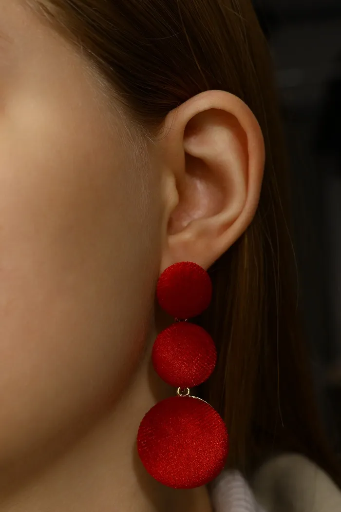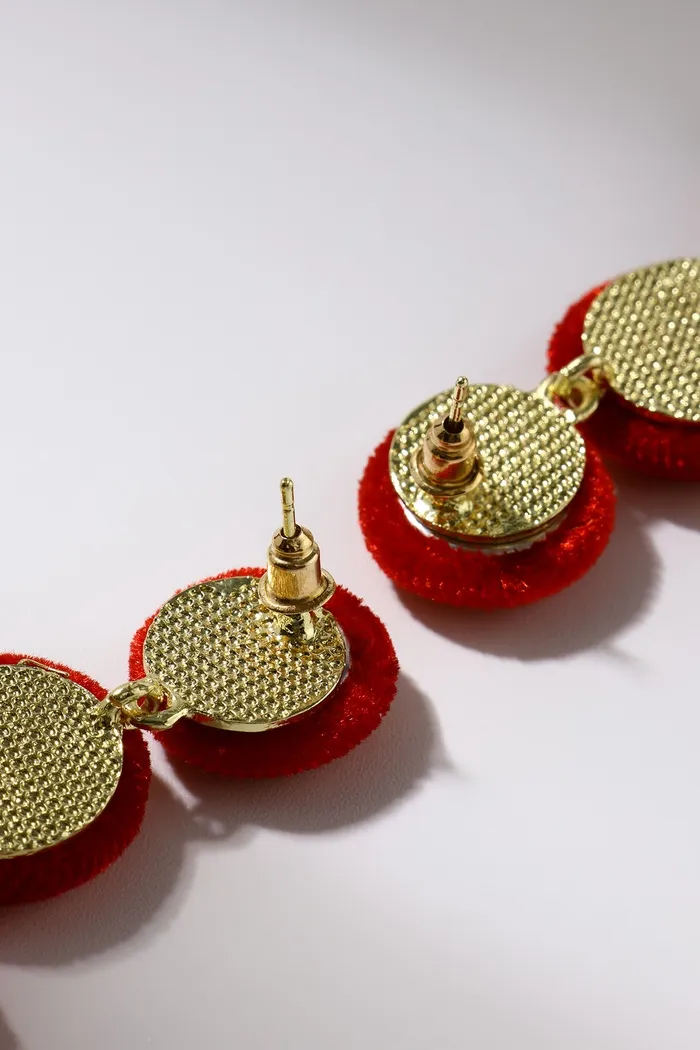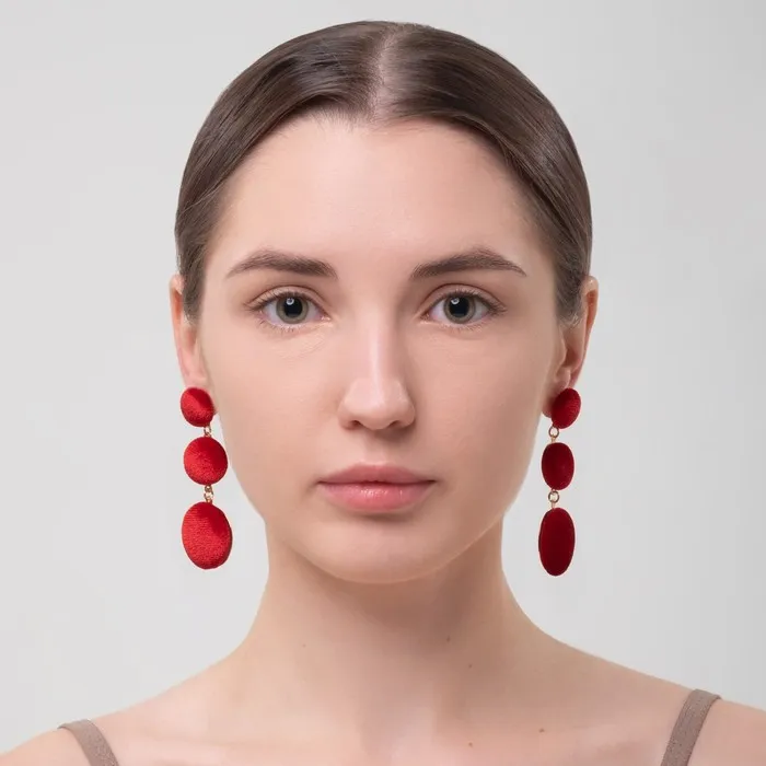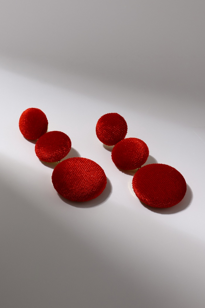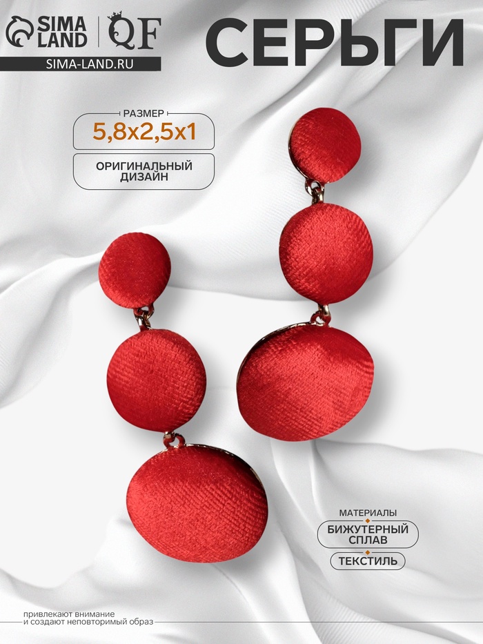 Серьги ассорти «Либеро» три диска, цвет красный в золоте — Характеристики