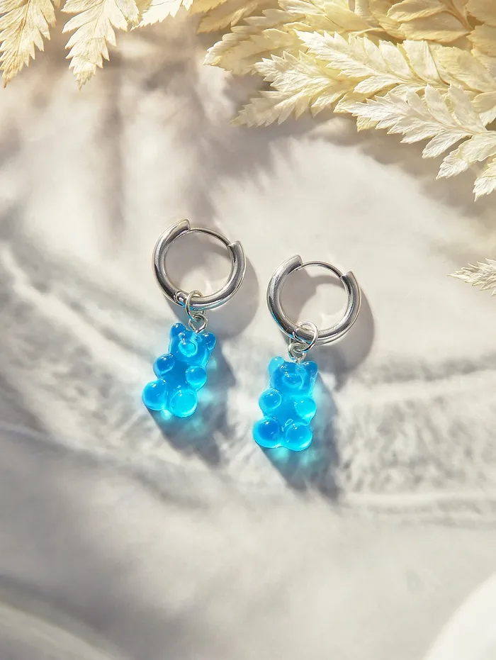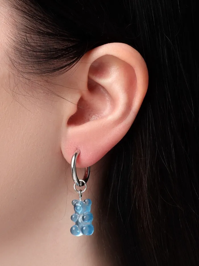 Голубые серьги-трансформеры с милыми мармеладными мишками станут ярким акцентом в вашем образе и подчеркнут игривый характер. Длина 4 см и лёгкий пластик в сочетании с серебристой металлической основой делают украшение комфортным для ежедневного ношения, а застёжка-конго обеспечивает надёжную фиксацию и удобство.