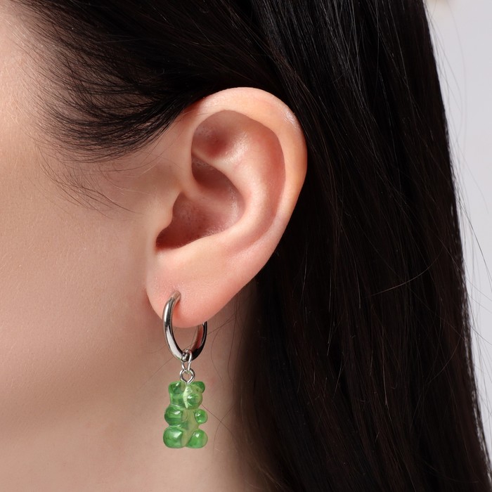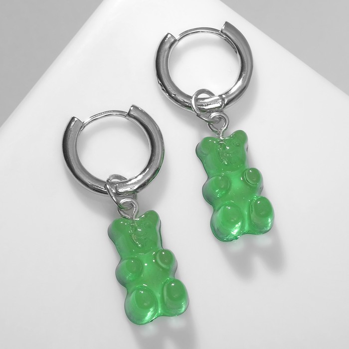 Серьги ассорти «Мармеладные мишки» трансформер, цвет салатовый в серебре — Характеристики
