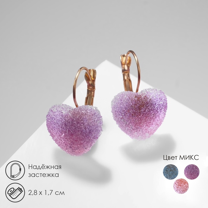 Серьги ассорти «Мармеладные сердечки» в сахаре, цвет МИКС — Характеристики