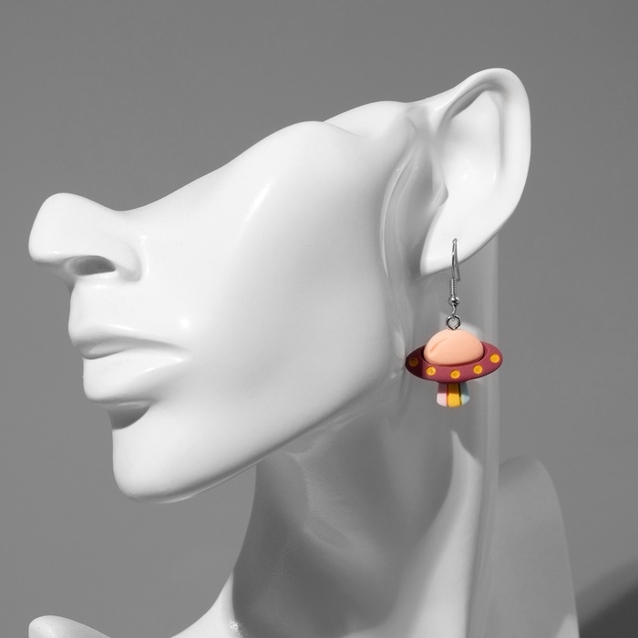 Яркие серьги с изображением космического корабля привносят в образ нотки фантазии и лёгкости. Их разноцветное исполнение на серебристой металлической основе создаёт эффект живого движения и подчёркивает уникальность каждой детали. Длина украшения всего 3 см — оптимальный размер для комфортного ношения и выразительного акцента.