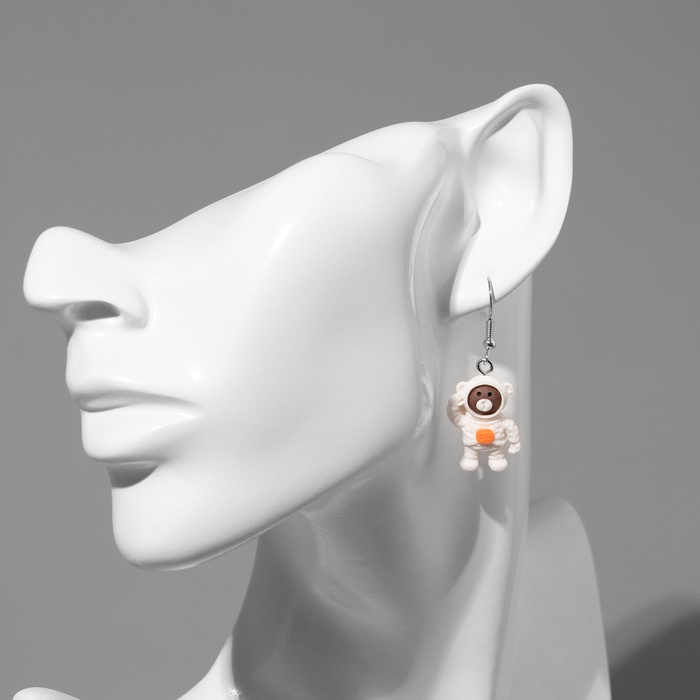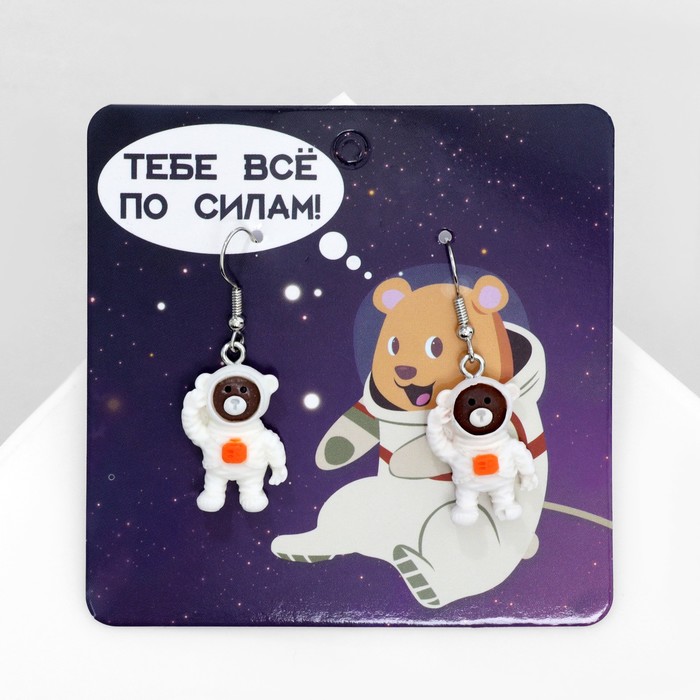 Серьги ассорти «Радость» космонавты медведи, цвет коричнево-белый в серебре — Характеристики