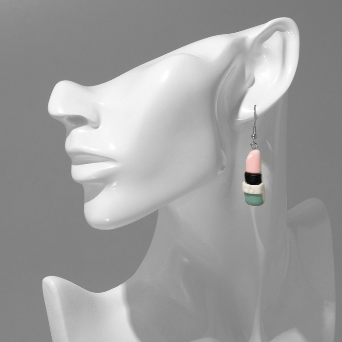 Яркие серьги с разноцветными акцентами в форме помады — это смелое и стильное украшение, которое привнесёт в образ игривость и настроение праздника. Длина 5,5 см позволяет серьгам стать заметным аксессуаром, не перегружая при этом общий вид, а серебристая фурнитура придаёт изделию современный и изящный блеск.