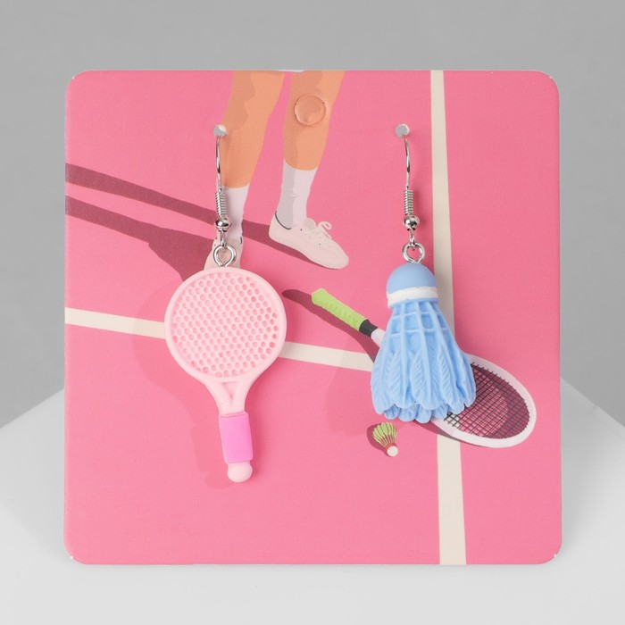 Серьги ассорти «Радость» ракетка и волан, цвет сине-розовый в серебре — Характеристики