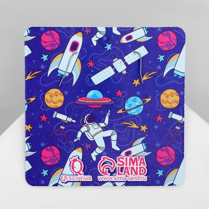 Металлическая основа с серебристым покрытием придаёт серьгам прочность и лёгкость, а вставки из полимерной глины раскрывают насыщенную палитру цветов, подчёркивая тематическую космическую стилистику. Замок-петля гарантирует надёжную фиксацию и удобство, позволяя не беспокоиться о сохранности украшения в течение дня.