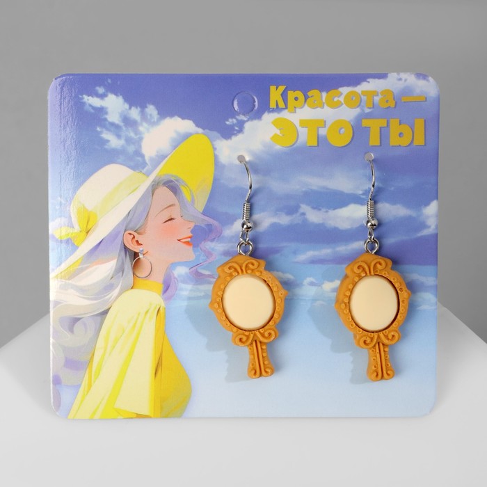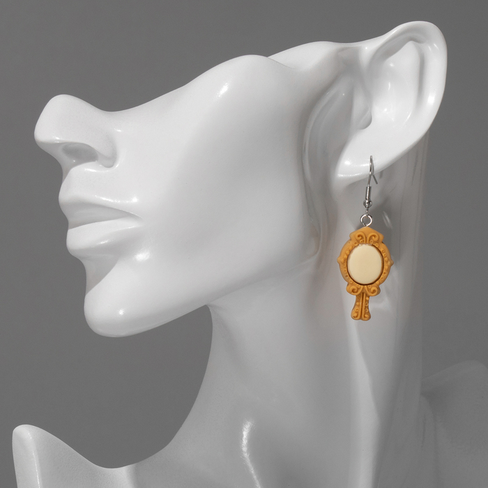 Стильные серьги с нежным бежевым оттенком и оригинальным дизайном в виде зеркал добавят утончённости и лёгкости вашему образу. Изделия длиной 5,5 см выполнены из полимерной глины на прочной металлической основе с серебристым покрытием, что обеспечивает долговечность и комфорт при ношении.