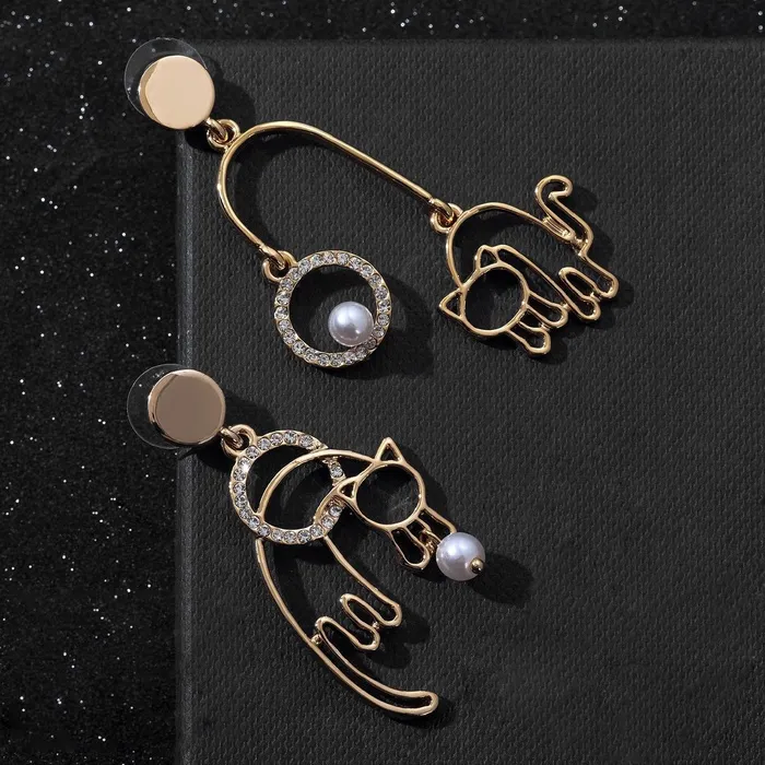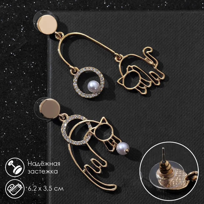 Серьги ассорти «Сиеста» игривые кошки, цвет белый в золоте — Характеристики