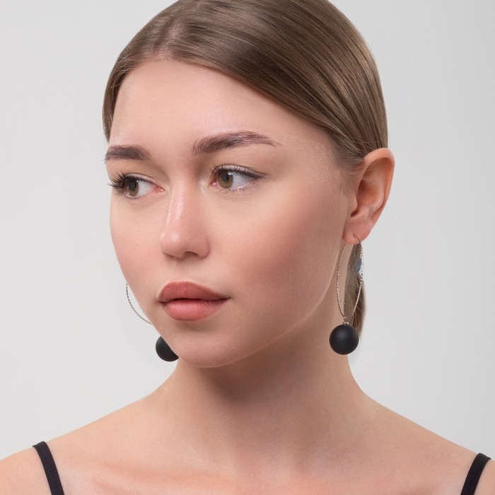 Серьги ассорти «Снежок» в кольце, цвет чёрный в серебре — Характеристики