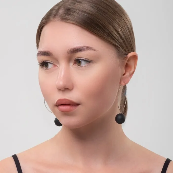 Чёрные серьги в серебристом кольце — универсальное украшение с новогодним акцентом, подчёркивающее стиль и индивидуальность. Длина 4,5 см создаёт лёгкий, но заметный эффект, подходящий для повседневного и праздничного образа.