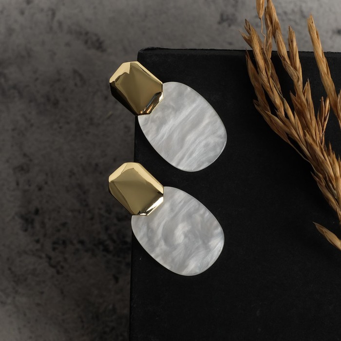 Элегантные серьги с перламутровыми овальными вставками в золотой оправе — воплощение утончённости и современного стиля. Их лаконичная форма и нежный белый оттенок создают гармоничный образ, который легко дополнит как повседневный, так и праздничный наряд.
