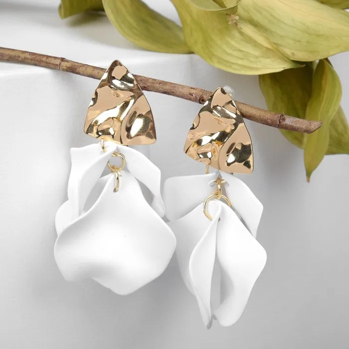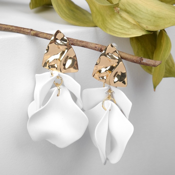 Серьги ассорти «Ветер» мятые треугольники, цвет бело-золотой — Характеристики