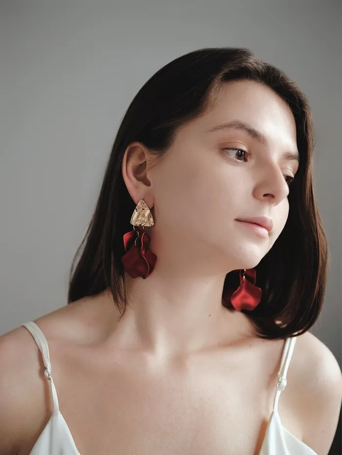Серьги ассорти «Ветер» мятые треугольники, цвет красно-золотой — Характеристики