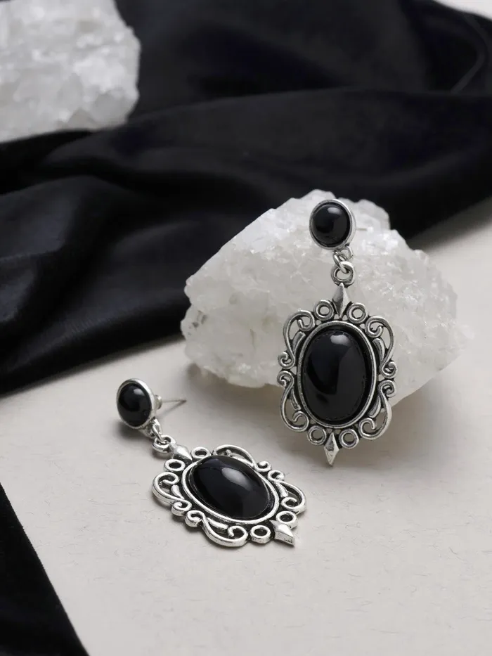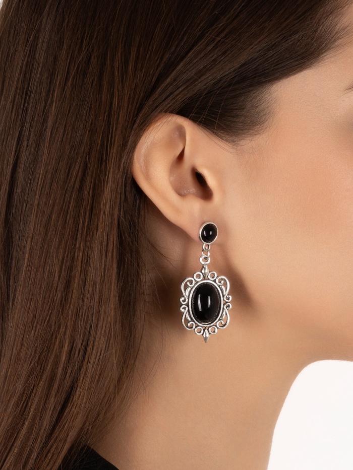 Погрузитесь в мир утонченной элегантности с серьгами в форме капли, которые станут идеальным дополнением к вашему образу. Их винтажный стиль и глубокий черный цвет, обрамленный чернённым серебром, создают загадочный и притягательный акцент, способный привлечь внимание в любой обстановке. Длина в 5 см делает их универсальными как для повседневной носки, так и для особых случаев.