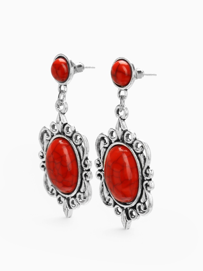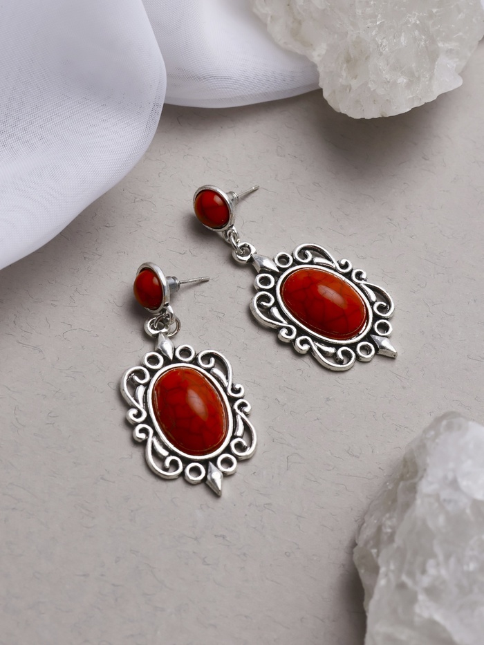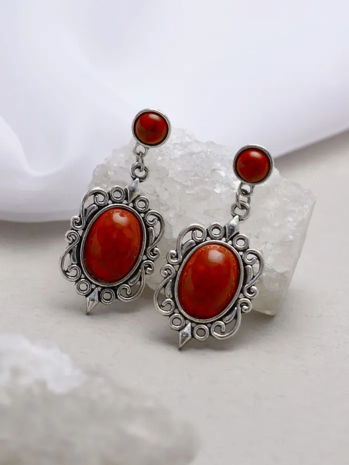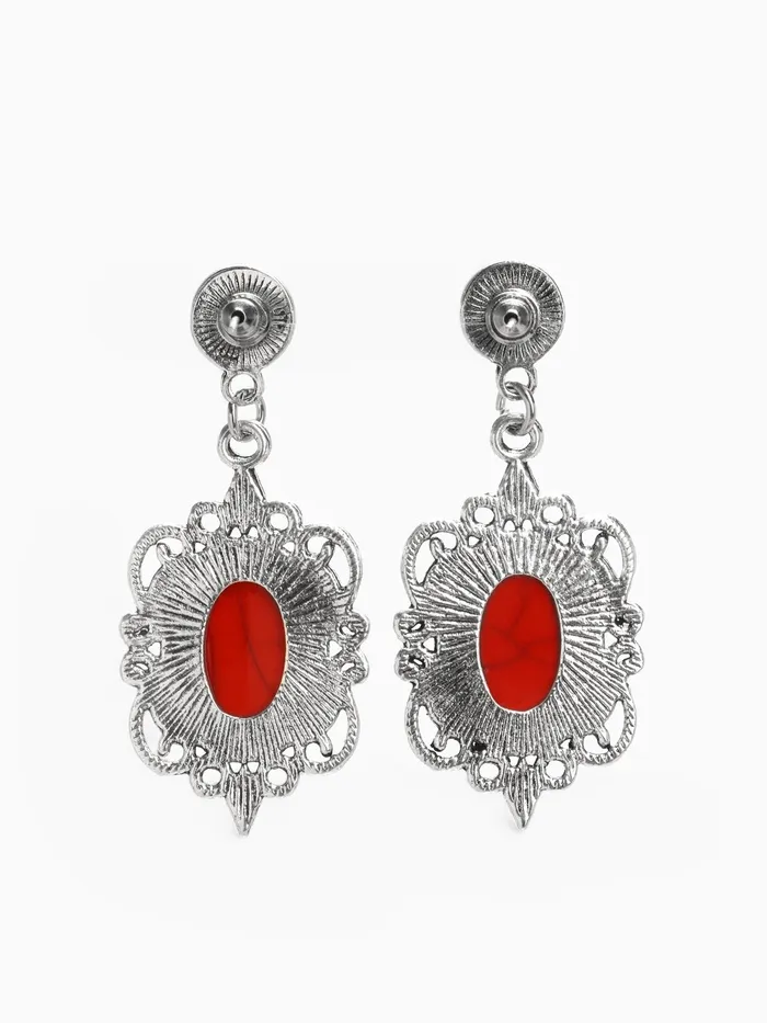Погрузитесь в мир утонченной элегантности с этими великолепными серьгами в форме капли. Их винтажный стиль и насыщенный красный цвет, обрамленный чернённым серебром, создают незабываемый акцент, который привлечет внимание и подчеркнет вашу индивидуальность. Длина в 5 см делает их универсальными для любого случая — от романтического ужина до вечеринки с друзьями.
