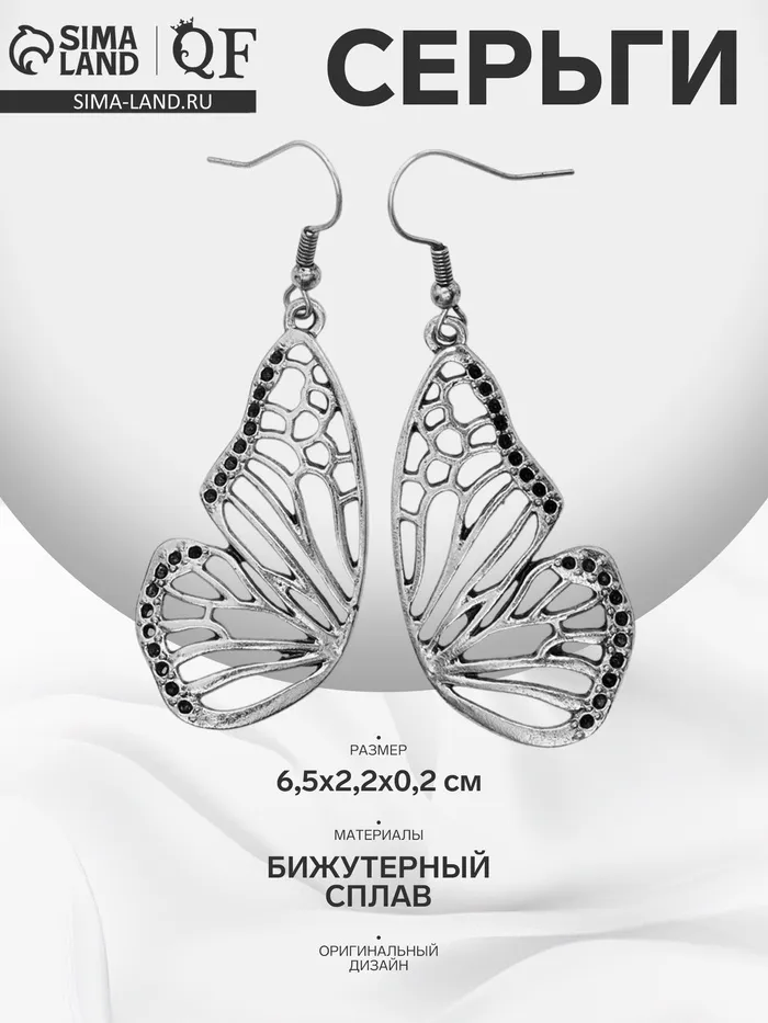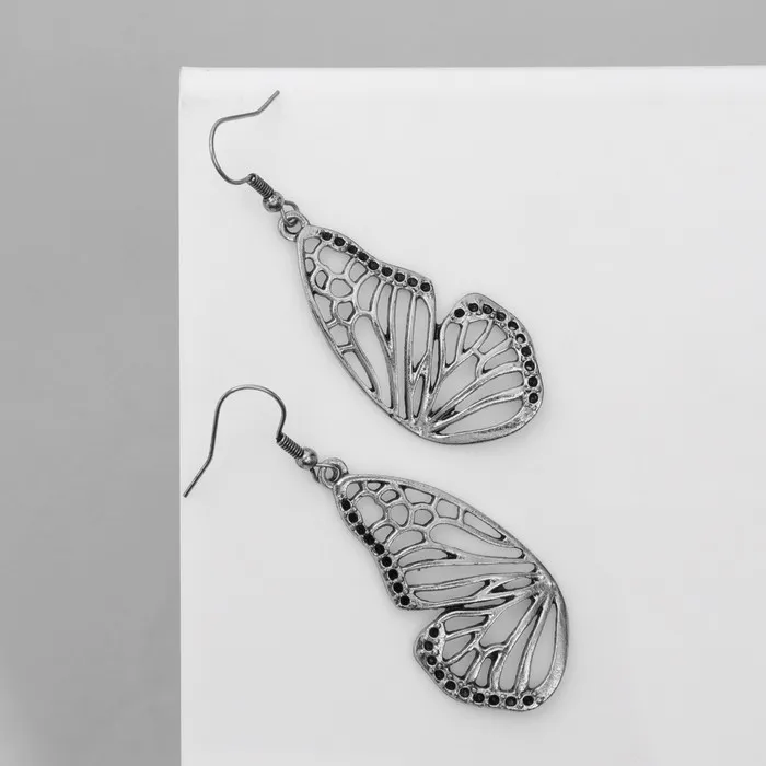 Серьги «Бабочки» крылья, цвет чёрный в чернёном серебре — Характеристики