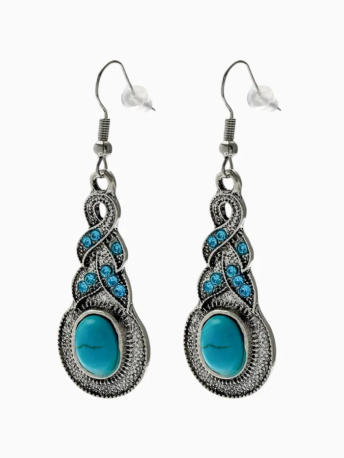 Представляем вам серьги, которые станут изюминкой вашего образа и привнесут в него свежесть и яркость. Эти висячие серьги длиной 5,5 см, выполненные в голубом цвете и чернёном серебре, идеально подходят для женщин, стремящихся подчеркнуть свою индивидуальность и стиль. Уникальная коса и искусственные вставки под натуральный камень, дополненные стразами, создают эффектный и элегантный вид.
