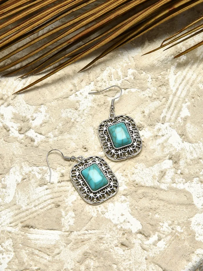 Откройте для себя уникальные серьги, которые добавят яркий акцент в ваш образ и подчеркнут вашу индивидуальность. Эти висячие серьги длиной 2,5 см, выполненные в бирюзовом цвете и чернённом серебре, идеально подойдут для женщин, стремящихся выразить свою элегантность и стиль. Прямоугольная форма и искусственная вставка под натуральный камень создают эффектный и современный вид.