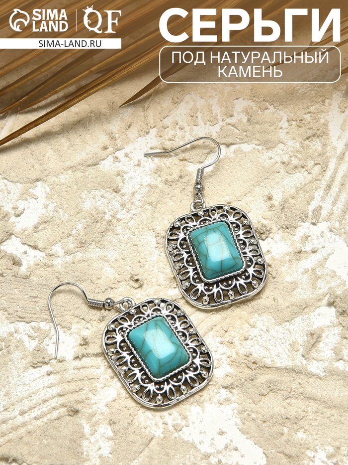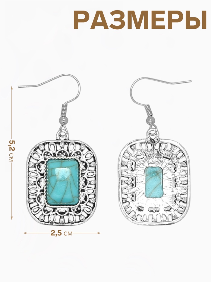 Серьги «Бирюзовый мир» прямоугольник, голубые в чернённом серебре — Характеристики