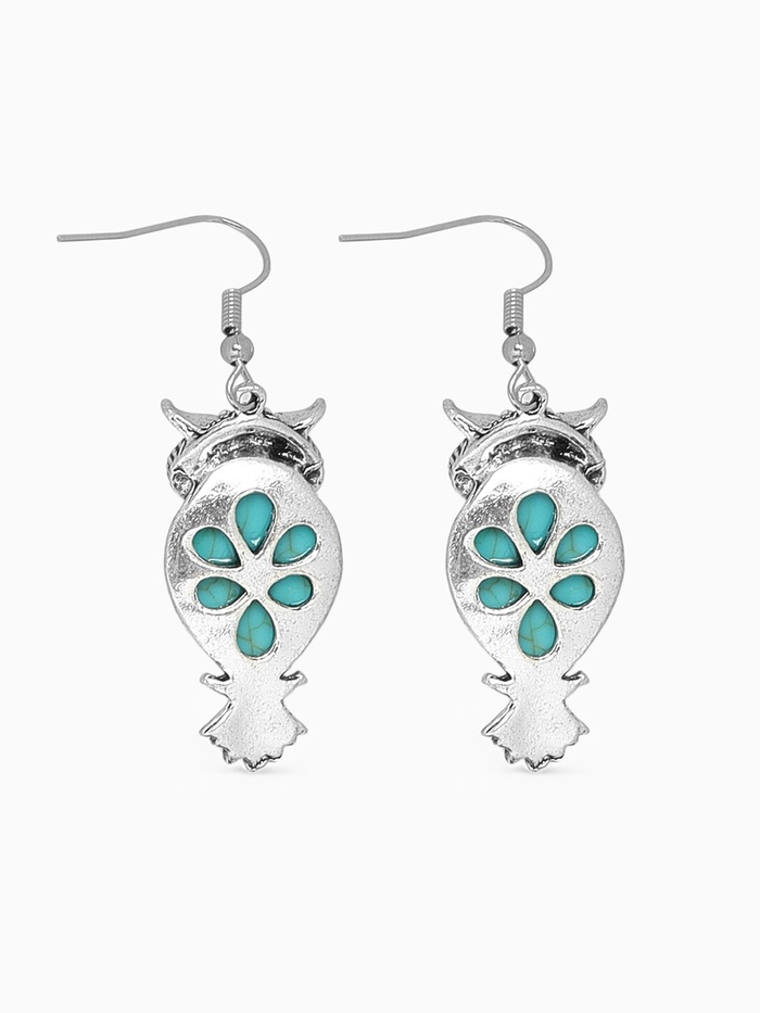 Серьги «Бирюзовый мир» сова, голубые в чернённом серебре