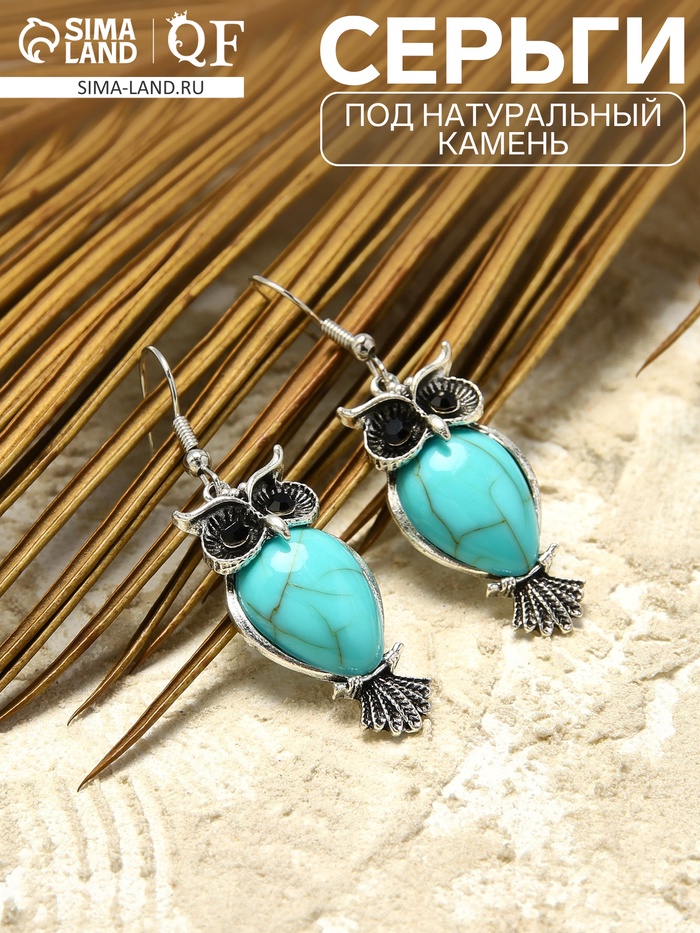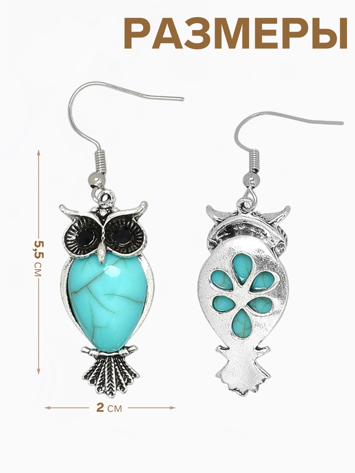 Серьги «Бирюзовый мир» сова, голубые в чернённом серебре — Характеристики
