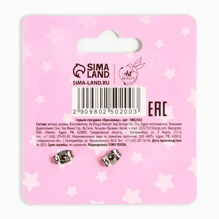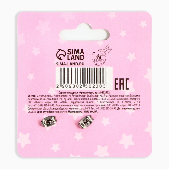 Серьги детские, гвоздики «Милые серьги» — Характеристики