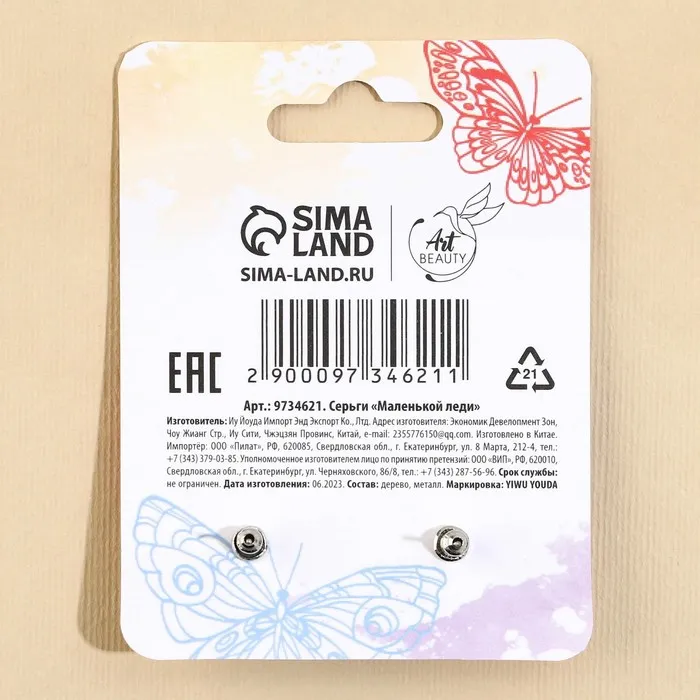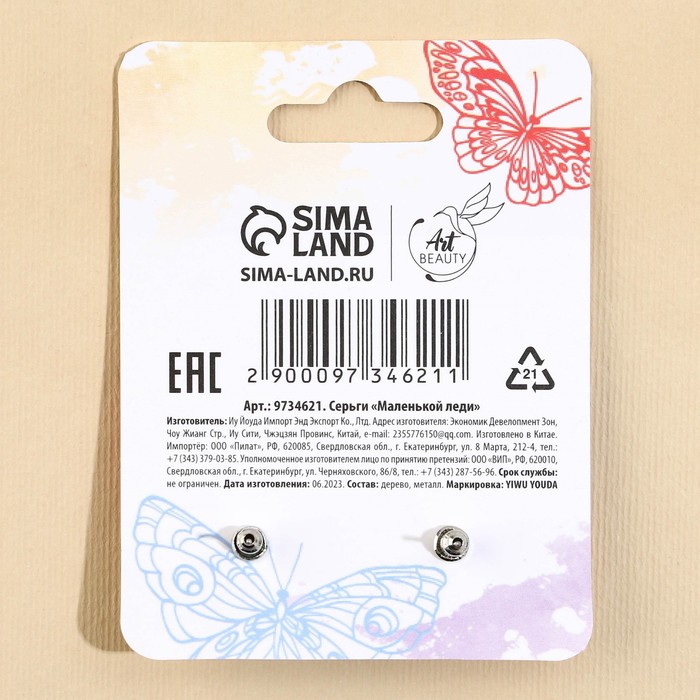 Серьги детские «Маленькой леди», гвоздики — Характеристики