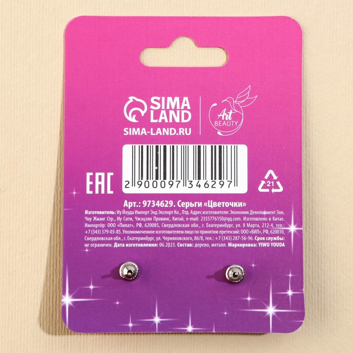 Серьги детские «Цветочки», гвоздики — Характеристики