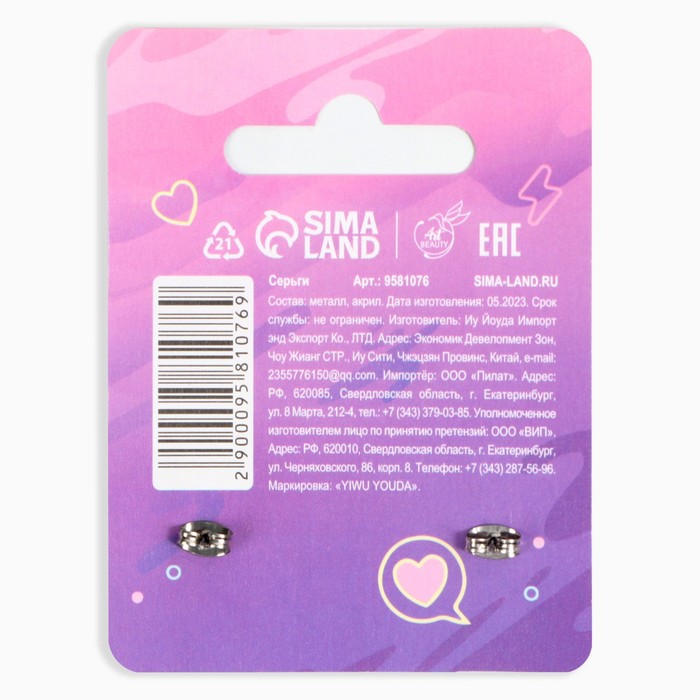 Серьги детские «В тренде», 2×1.5 см — Характеристики