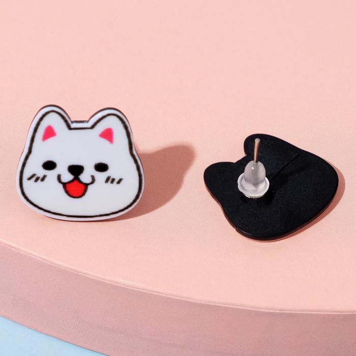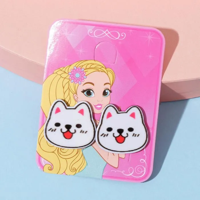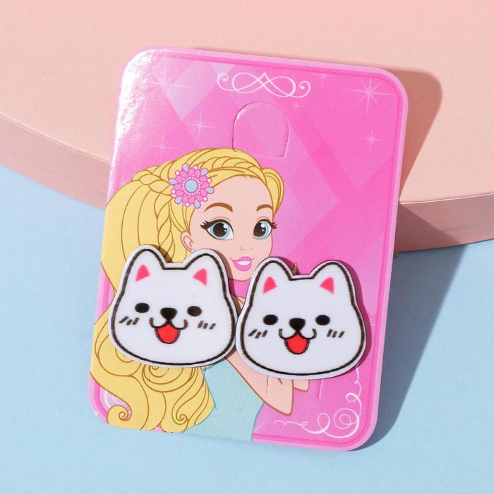 Серьги детские Выбражулька «Собачки», белые в серебре