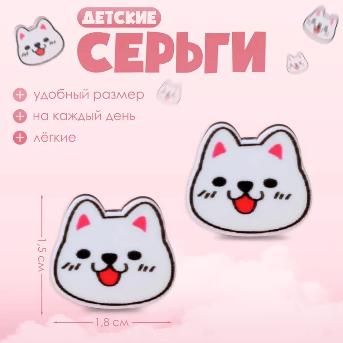 Серьги детские Выбражулька «Собачки», белые в серебре — Характеристики