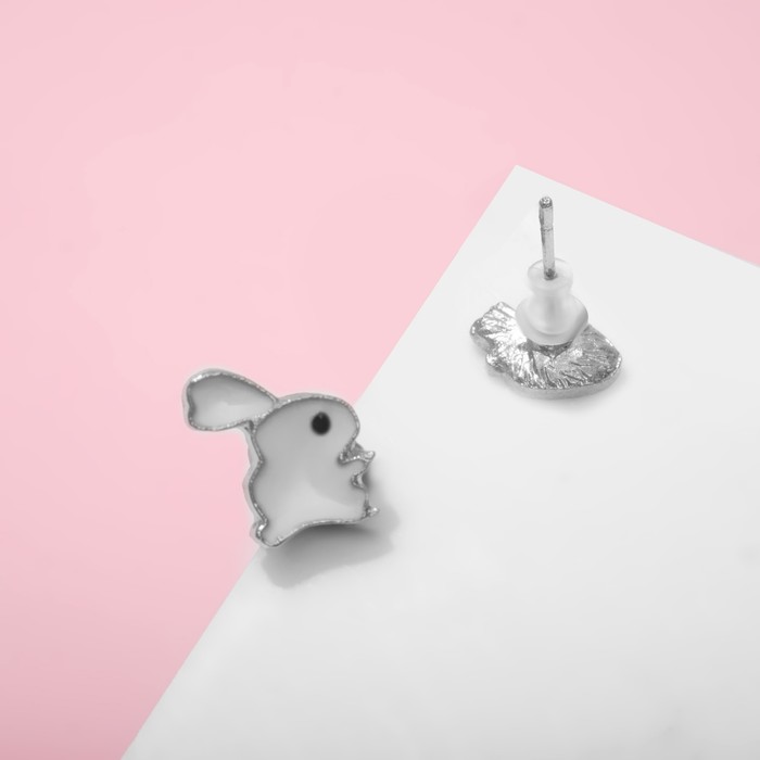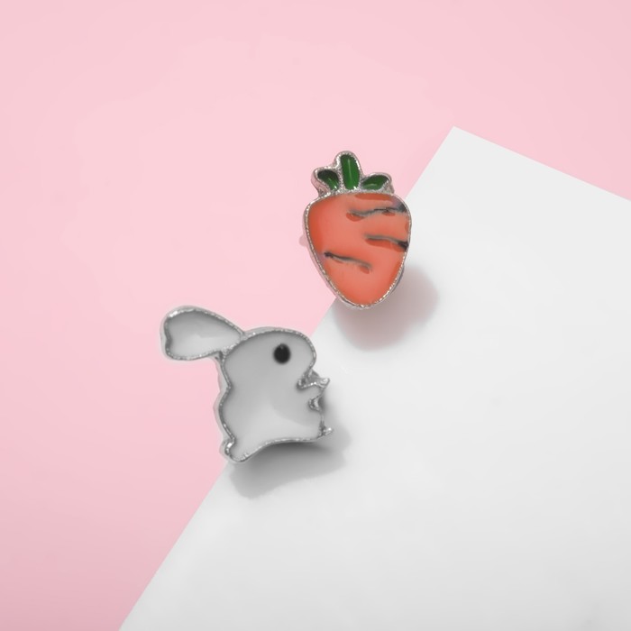 Серьги детские Выбражулька «Зайчик с морковкой», цветные в серебре